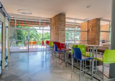 The camp takes place at the Inturjoven facilities in Marbella, which feature a swimming pool, cafeteria, gardens, common areas with games such as foosball and billiards, and a meeting room.